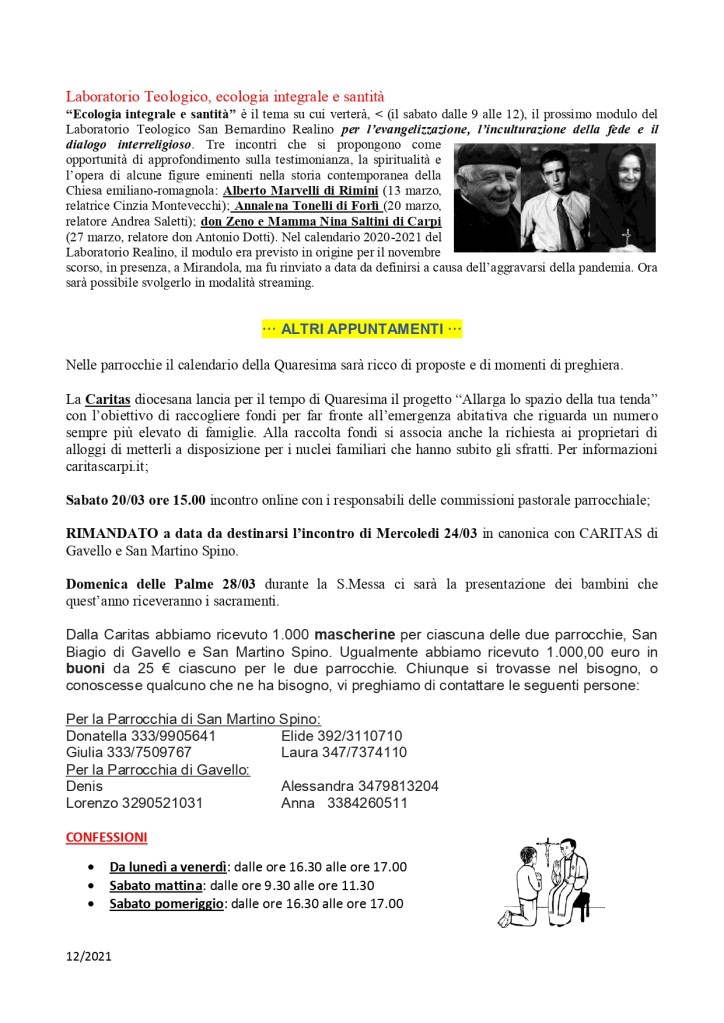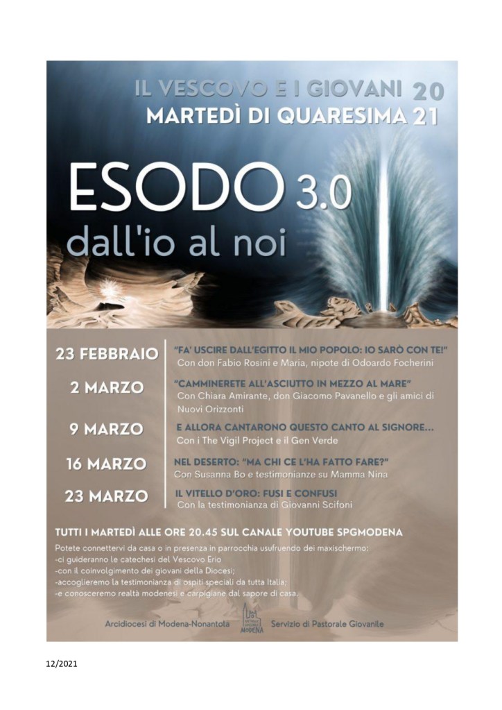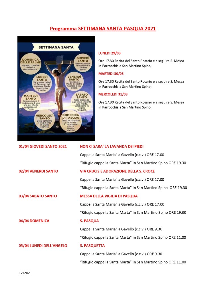 Settimanale sabato 20 marzo 2021 – domenica 28 marzo 2021 Pubblicato daparrocchiasms20 marzo 202120 marzo 2021Pubblicato in: Settimanale Correlati