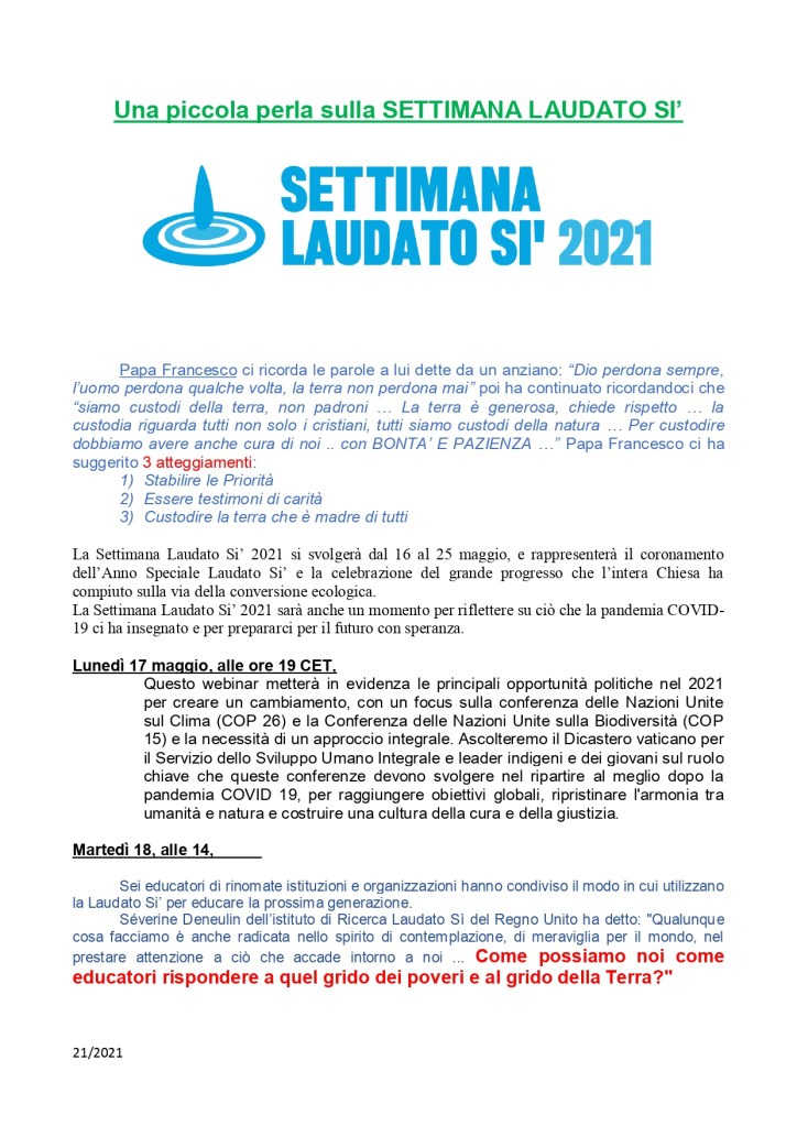Settimanale sabato 22 maggio 2021 – domenica 30 maggio 2021 Pubblicato daparrocchiasms23 Maggio 2021Pubblicato in: Settimanale Correlati