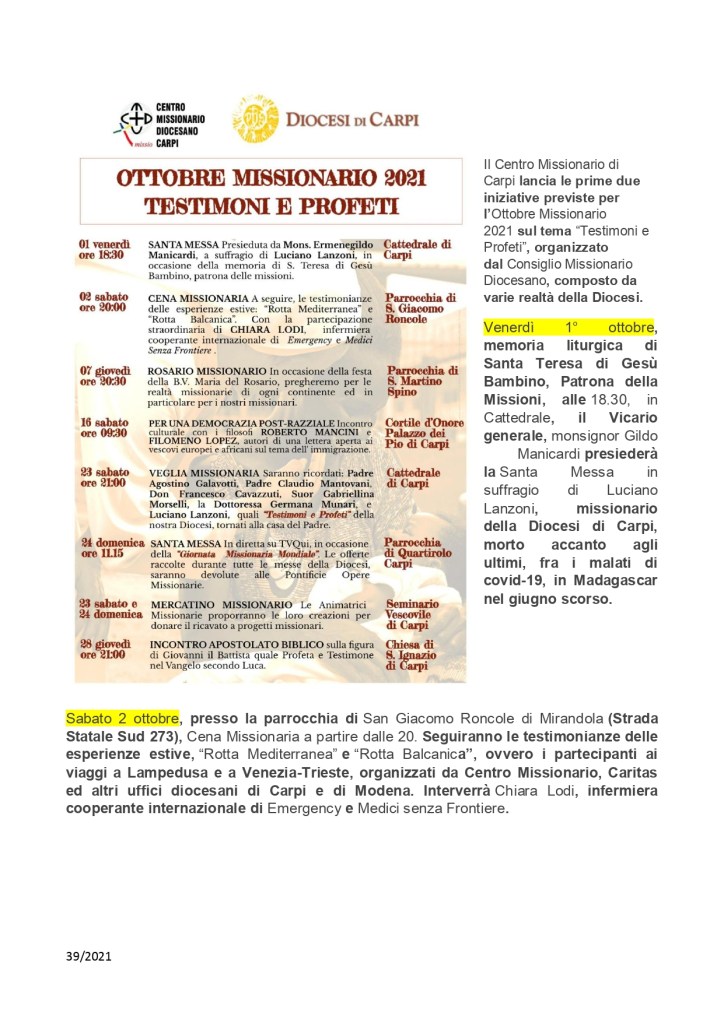 Settimanale sabato 25 settembre 2021- domenica 3 ottobre 2021 Pubblicato daparrocchiasms26 settembre 2021Pubblicato in: Settimanale Correlati