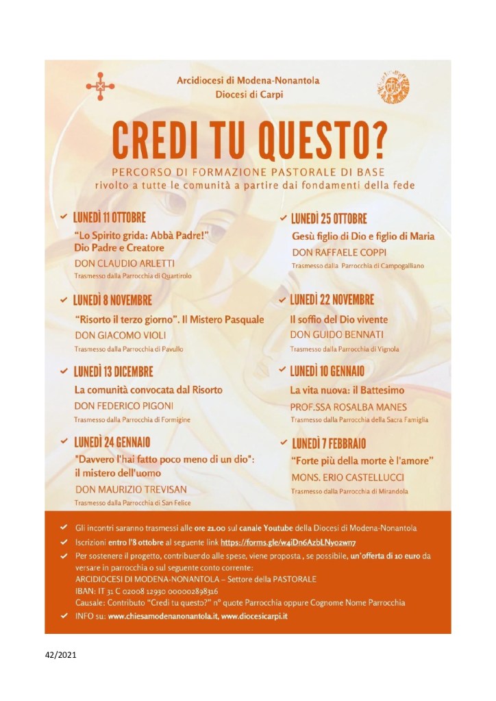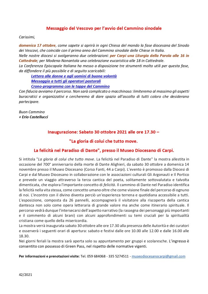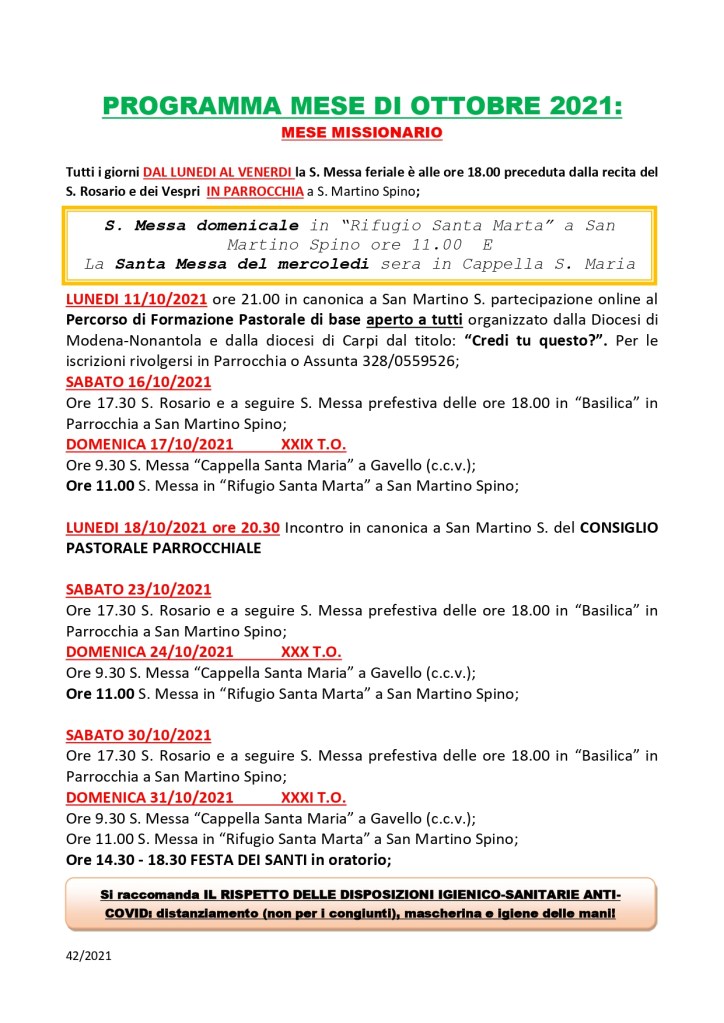Settimanale sabato 16 ottobre 2021- domenica 24 ottobre 2021 Pubblicato daparrocchiasms16 ottobre 202122 ottobre 2021Pubblicato in: Settimanale Correlati