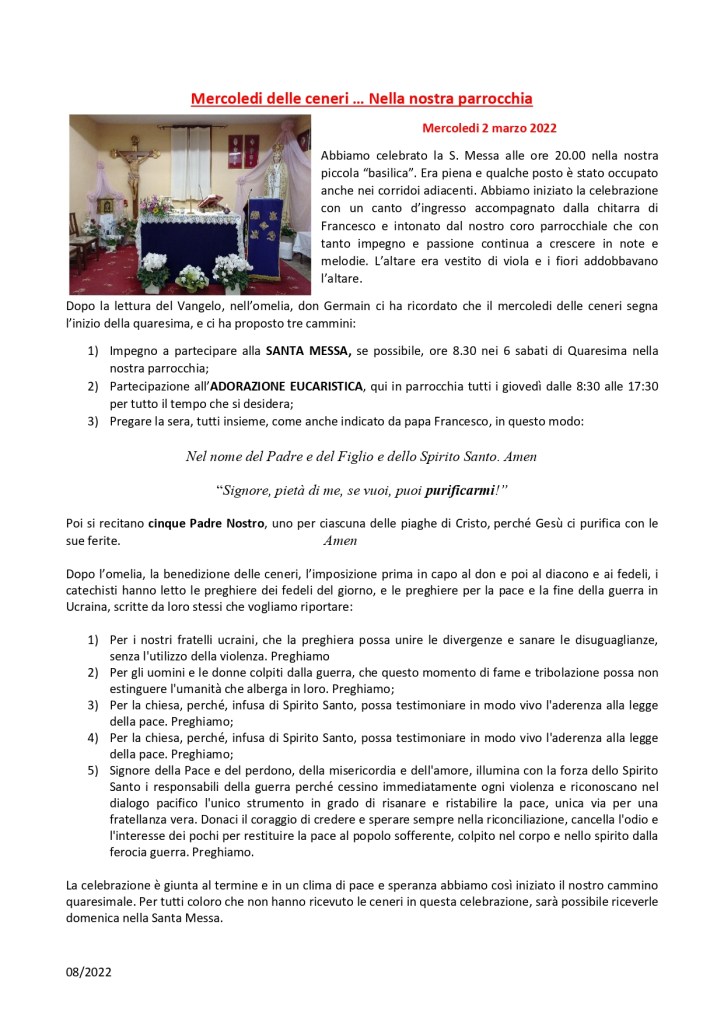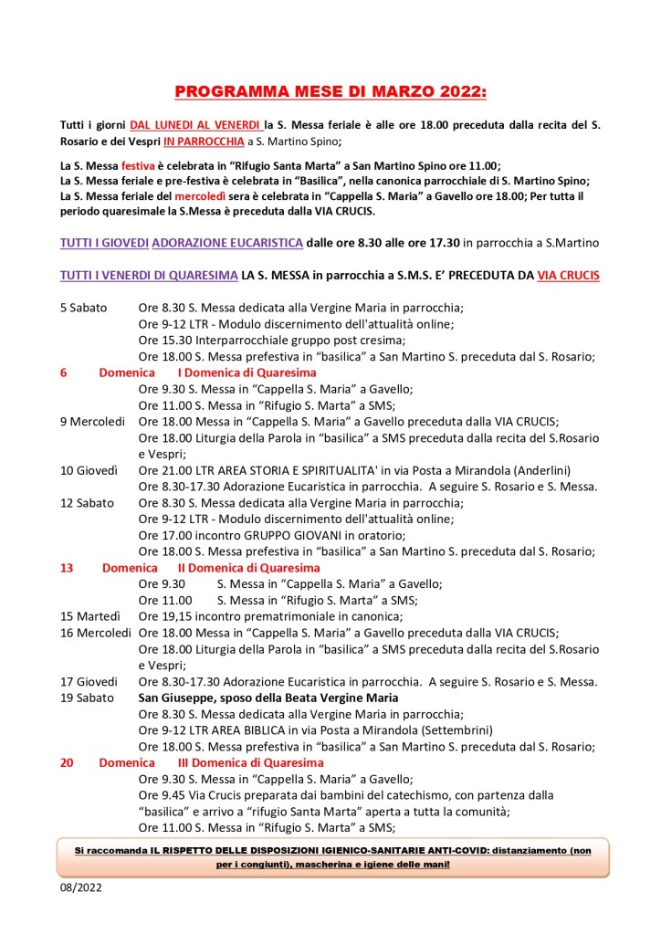 Settimanale sabato 5 marzo 2022 – domenica 13 marzo 2022 Pubblicato daparrocchiasms6 marzo 2022Pubblicato in: Settimanale Correlati