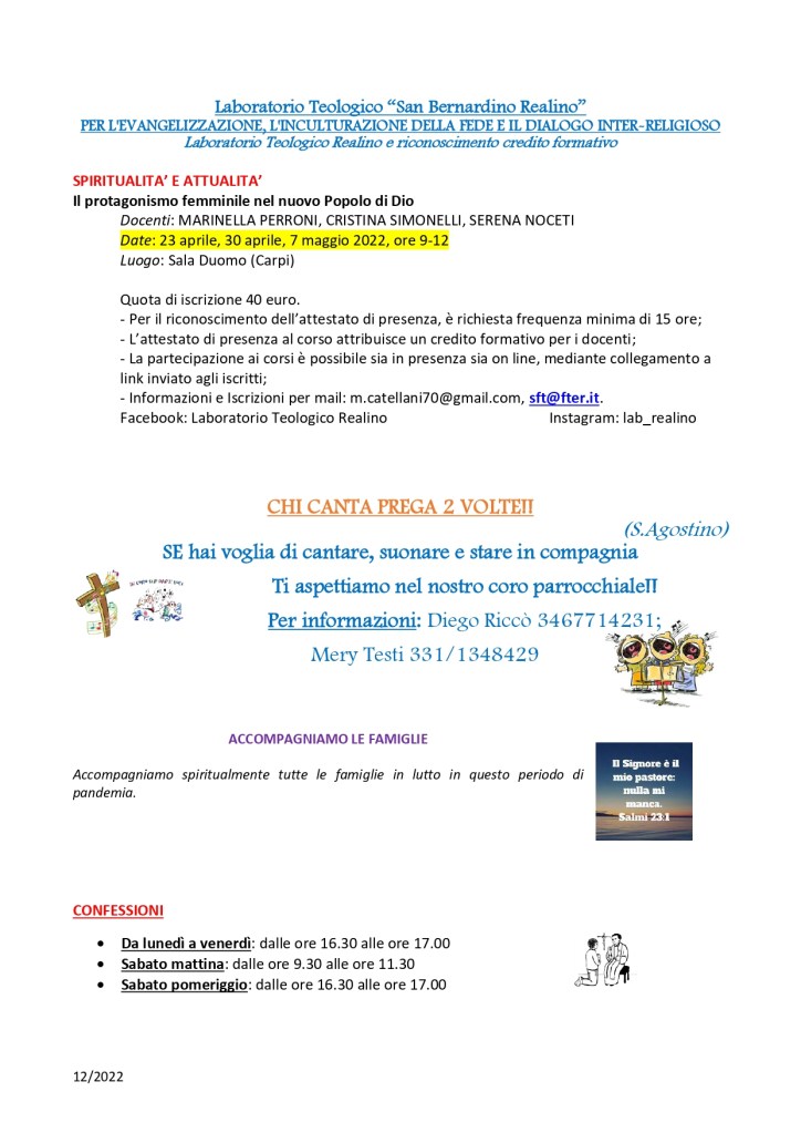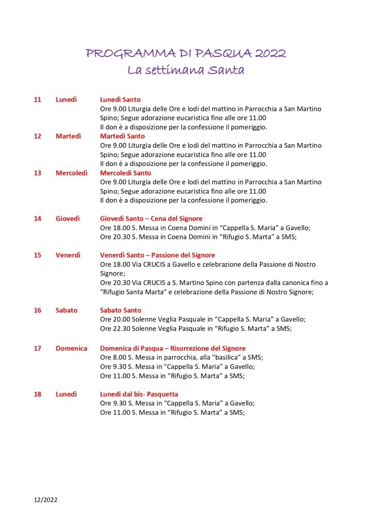 Settimanale sabato 2 aprile 2022 – domenica 10 aprile 2022 Pubblicato daparrocchiasms6 aprile 2022Pubblicato in: Settimanale Correlati