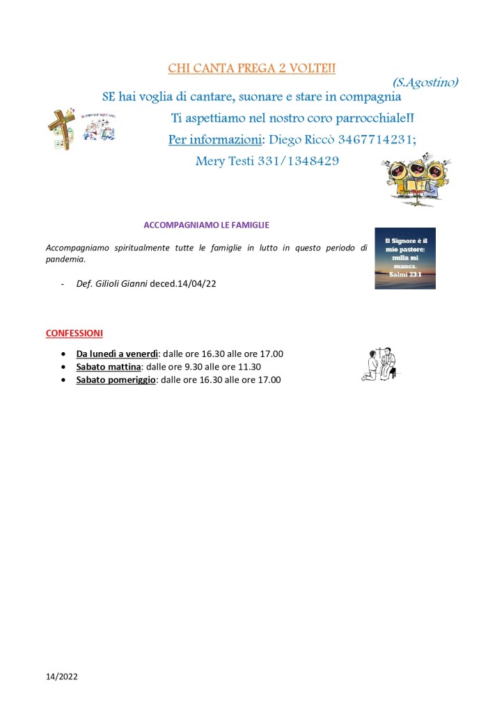 Settimanale sabato 16 aprile 2022 – Domenica 24 aprile 2022 Pubblicato daparrocchiasms26 aprile 2022Pubblicato in: Settimanale Correlati