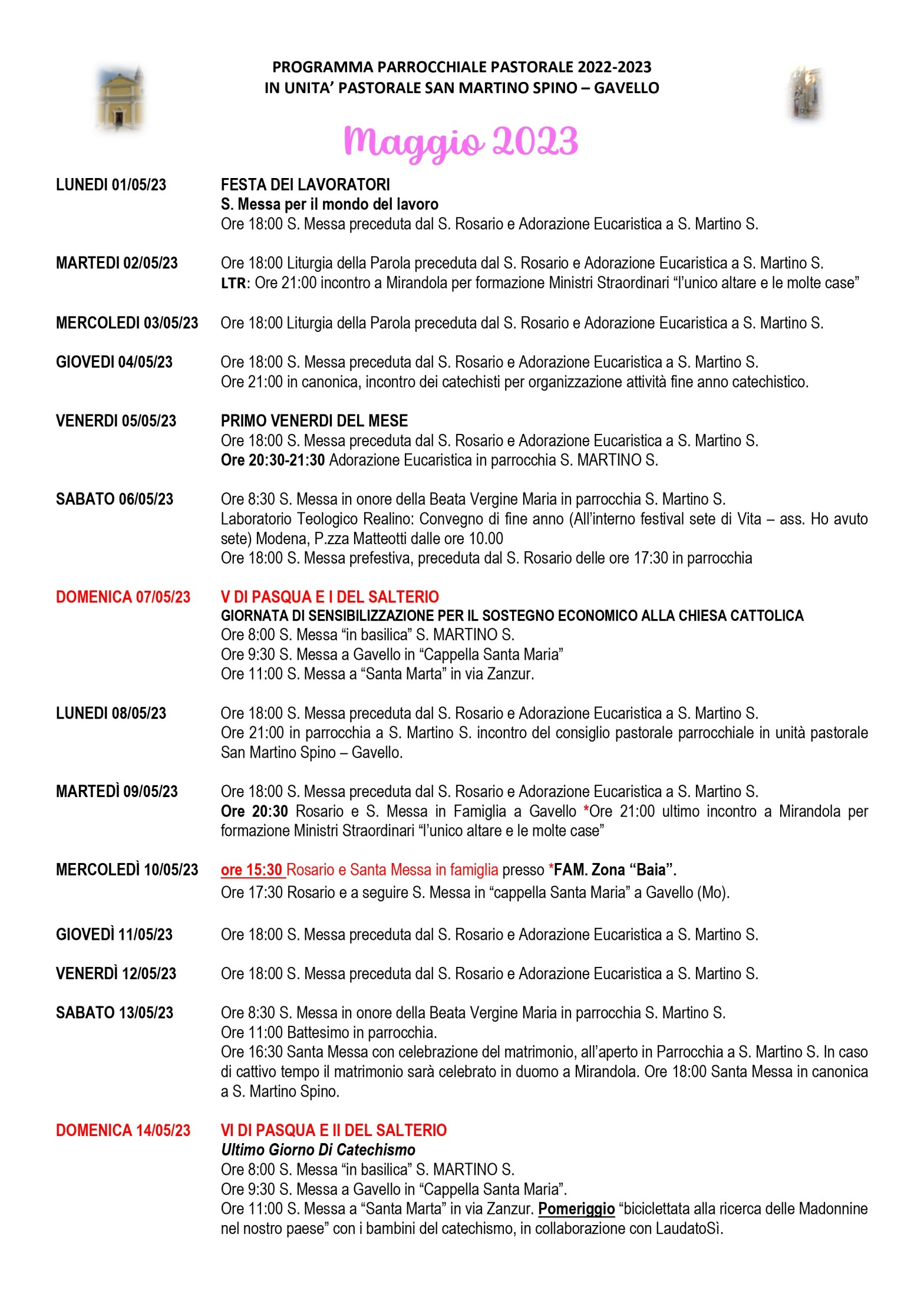 Programma mensile maggio 2023 Pubblicato daparrocchiasms8 Maggio 2023Pubblicato in: Settimanale Correlati