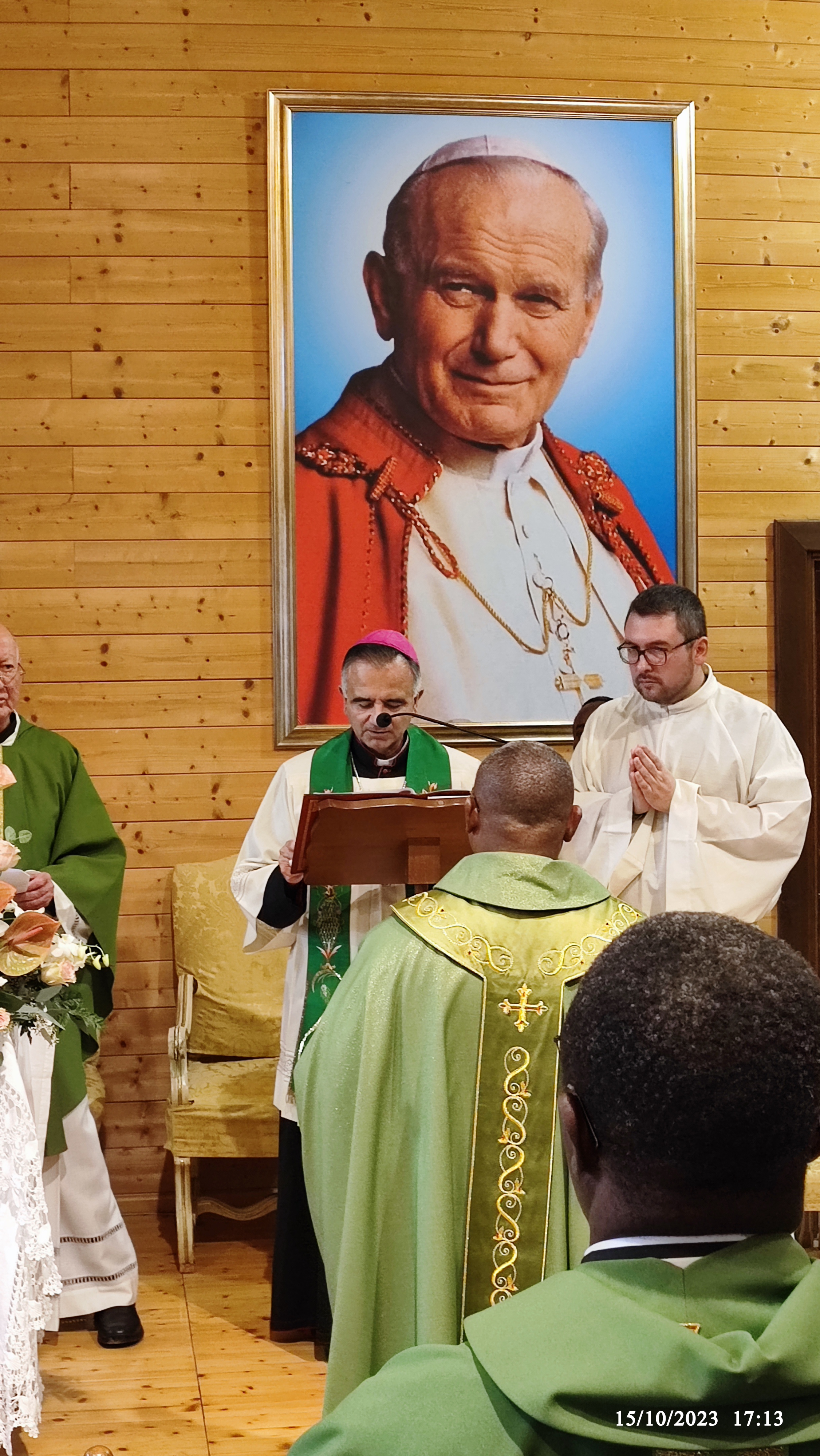 Auguriamo il meglio per don Germain nella sua nuova parrocchia di Novi e nella sua nuova comunità di parrocchiani. Abbiamo visto che, in fin dei conti, non se la passa male anche lì… La parrocchia di Novi può contare su un buon numero di persone, nonché di organizzazione, con la presenza di tante figure che sicuramente gli saranno di ausilio nelle sue attività. Lo spazio è molto grande, con la presenza di una canonica, una sala polivalente chiamata “Emmaus”, una sala per il catechismo, due cucine, un teatrino/cinema, un campo da calcio e da basket e tante altre cose. Non dimentichiamo la Chiesa, una struttura in legno di prim’ordine. Purtroppo l’assenza di quella in pietra è una caratteristica che lo persegue, proprio mentre iniziano i lavori della nostra, gli capita una Chiesa di cui non si sa nemmeno quando partiranno i lavori. Se non altro ha un grande patrono a proteggerlo, San Michele Arcangelo, principe della Milizia Celeste. In un certo senso rimaniamo anche legati, in fondo San Martino era un soldato…