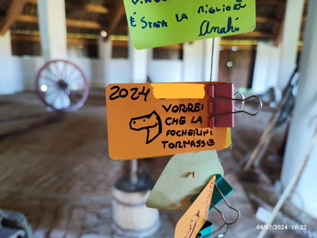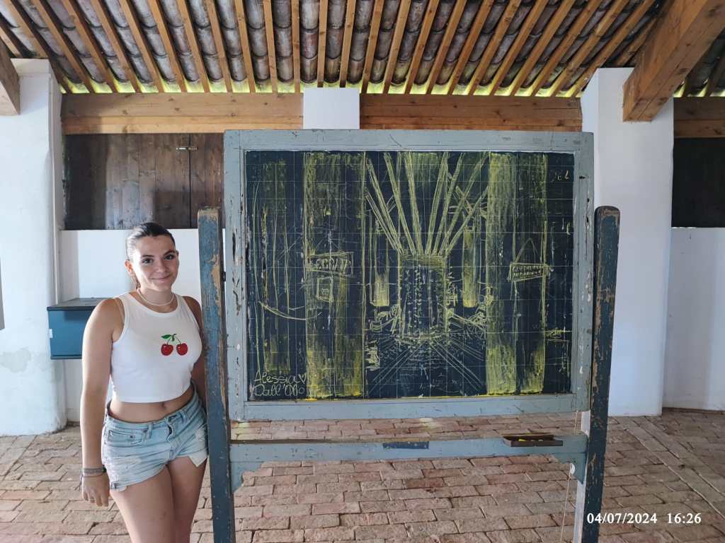 L’altra invece è stata al Barchessone Portovecchio, dove è stata scattata questa suggestiva foto ricordo con la balla di fieno. Anche qui si sono susseguiti diversi giochi dove i bambini hanno potuto correre in mezzo al verde e visionare la mostra all’interno del Barchessone. Sono stati lasciati anche dei biglietti-ricordo, di cui uno veramente bello e significativo e, su una lavagna, Alessia Dall’Olio si è dilettata con le sue doti artistiche riproducendo in prospettiva la vista dell’interno. Una bellissima opera che abbiamo fotografato volentieri a ricordo del momento.