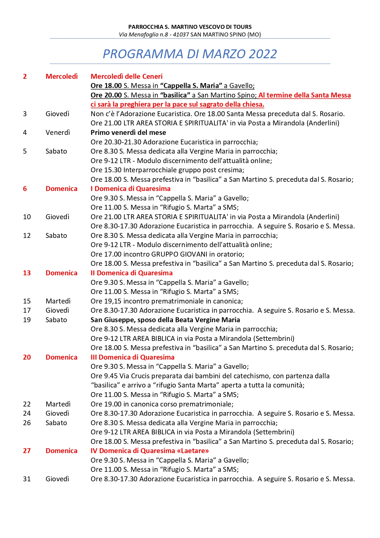 Programma mensile marzo 2022