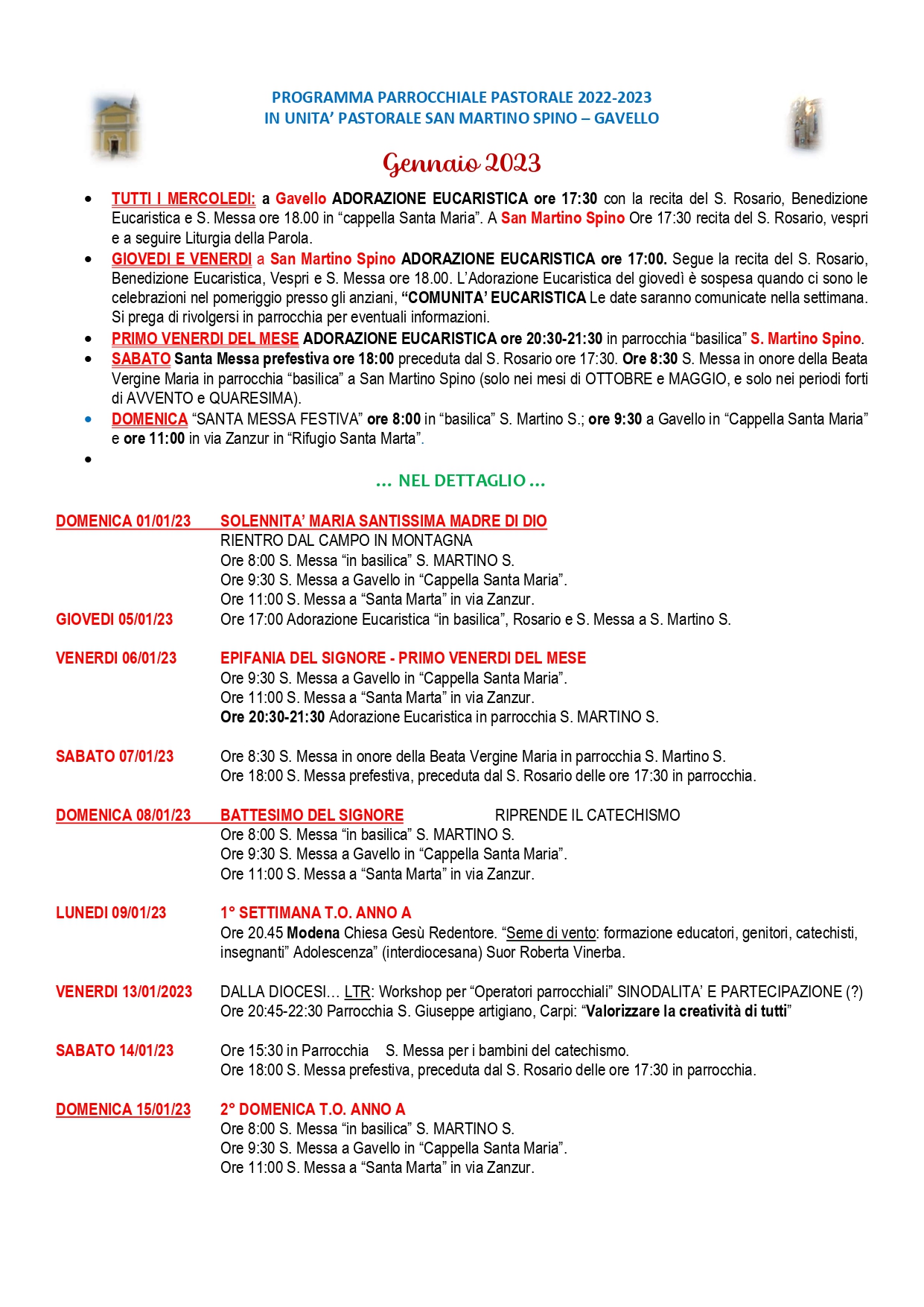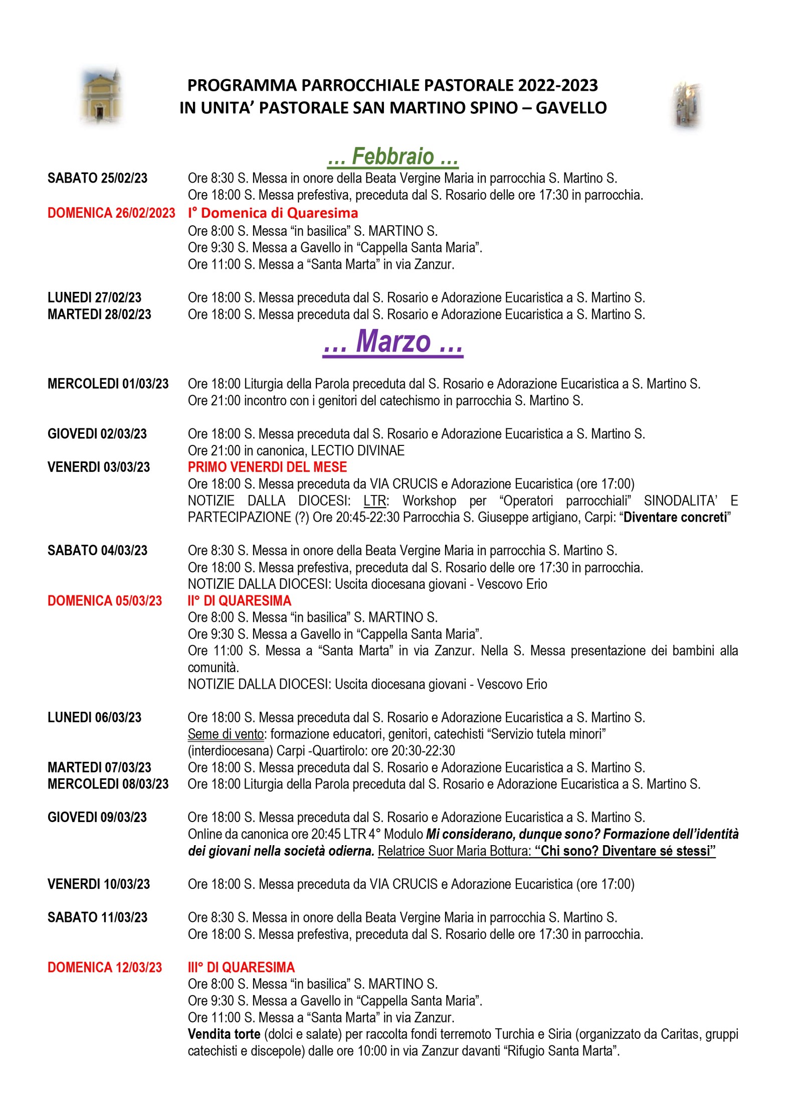 La tradizionale festa di S. Martino, patrono della nostra Parrocchia, si festeggerà nelle giornate di sabato 11 e domenica 12 novembre. Sabato la S. Messa sarà alle ore 18 mentre domenica si celebrerà la festa alle ore 11 presso il Palaeventi (via Zanzur, c/o campo sportivo). Le S. Messe saranno celebrate dal nostro neo-parroco donContinua a leggere “Festa del patrono 2023”